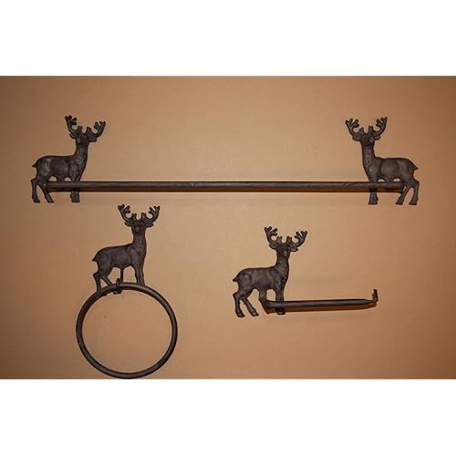 Zeckos deer attendant toilet brush and holder 2 piece set. Amazon's choice for deer bathroom accessories. Rustic shower curtains, bear and moose towels and other wildlife bath decor items are just a few of the lodge bath accessories we offer. 4.5 out of 5 stars. Deer decor bathroom set, deer soap jar, deer toothbrush jar, deer storage jars.
